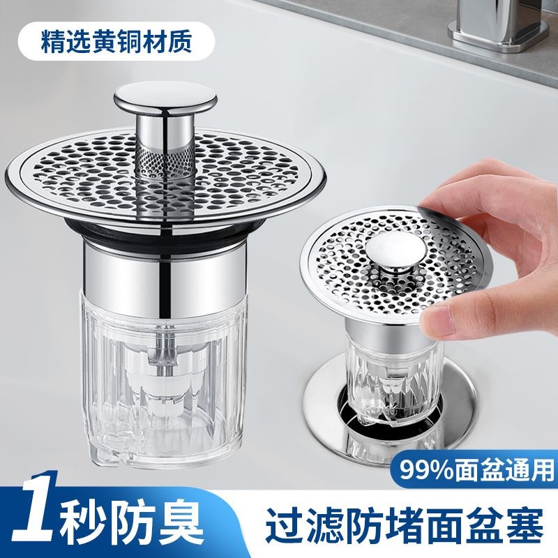 洗面器の顔の池の水漏れの栓の顔のたらいの跳ねる芯の下水管は圧力式の304フィルターの防虫を押して塞ぐことを防ぎます。
