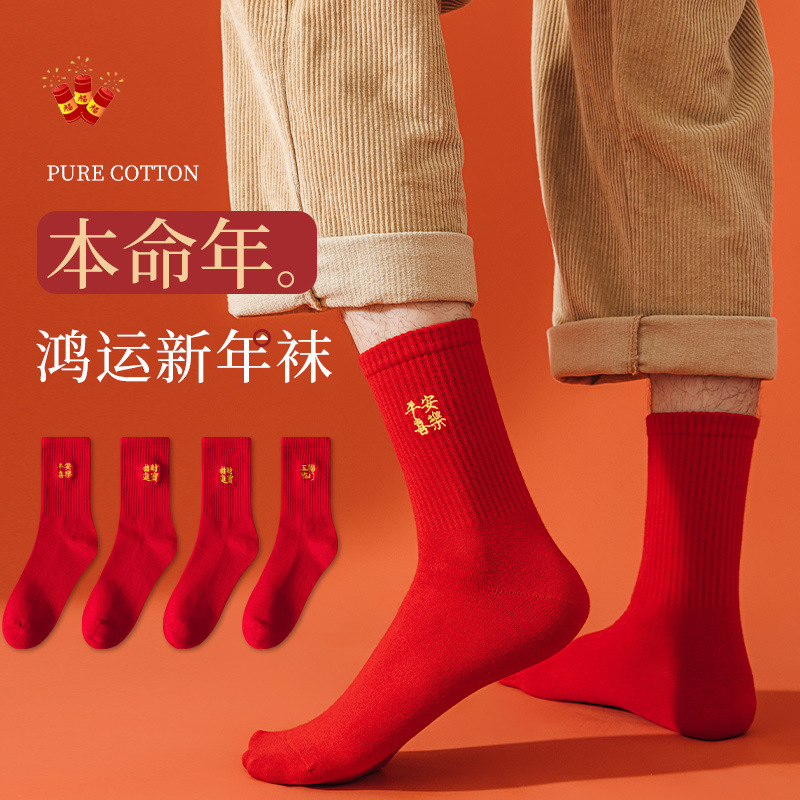 2026本命年红色袜子男女中筒袜刺绣款马年新年礼物结婚无骨大红袜