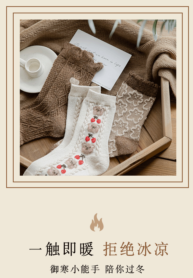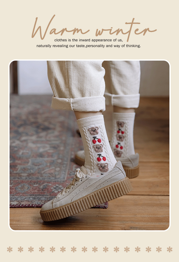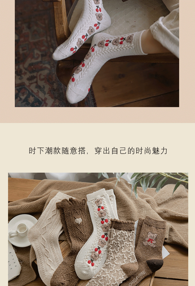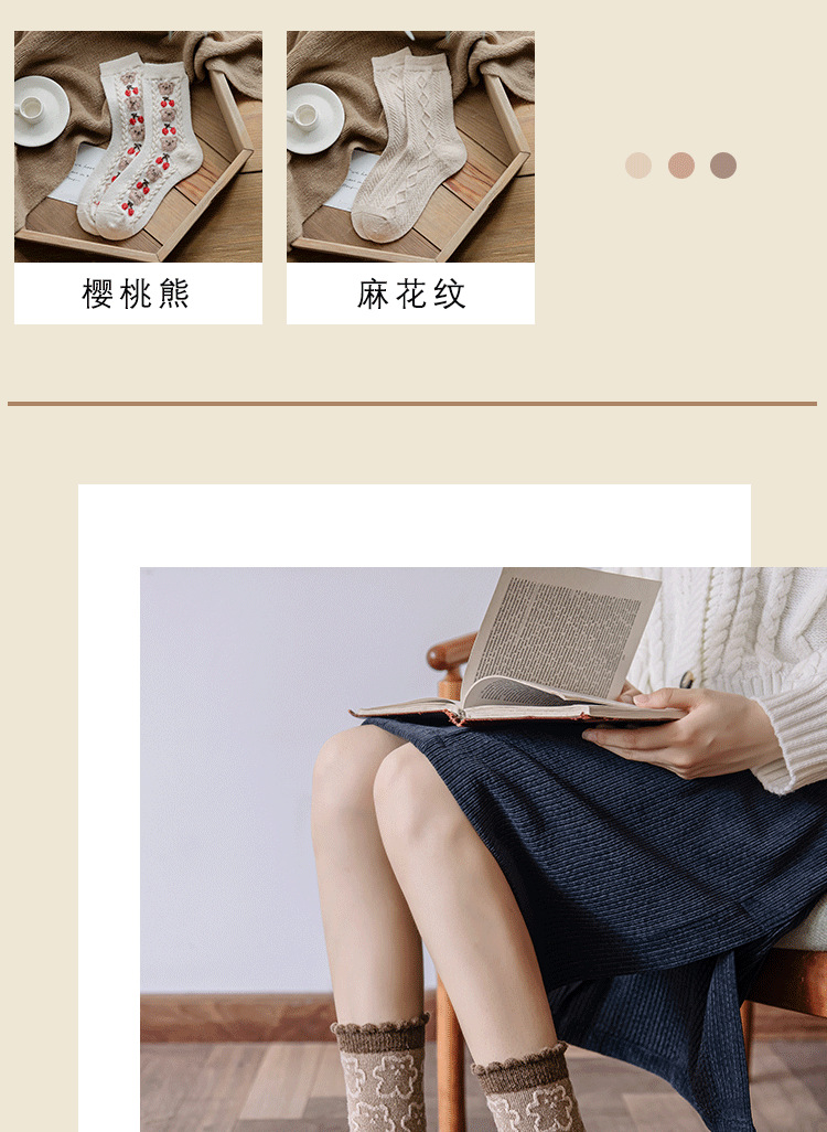 靴下の女性の中筒の靴下の秋冬の厚い保温のウールの靴下の日本のかわいいinsの潮の森の系の復古の靴下