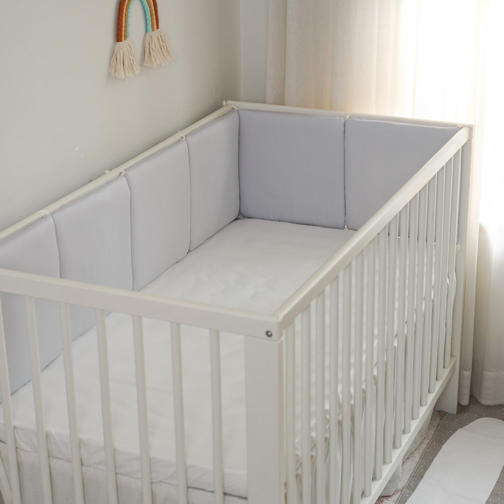 ベビーベッド新生児ベッド用品衝突防止フェンス純綿功サテングレー30*30*6枚全体洗浄