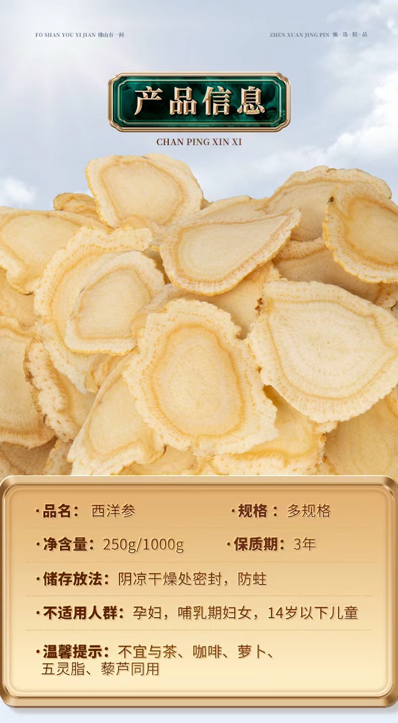 正品加拿大花旗参西洋参片中药材批发 五年足龄老参软枝片可代发