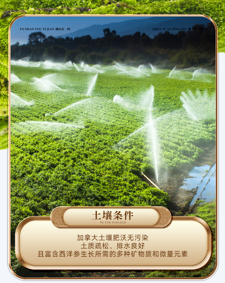 カナダ西洋参粒頭足齢西洋参段は西洋参の円粒の産地を切ります。