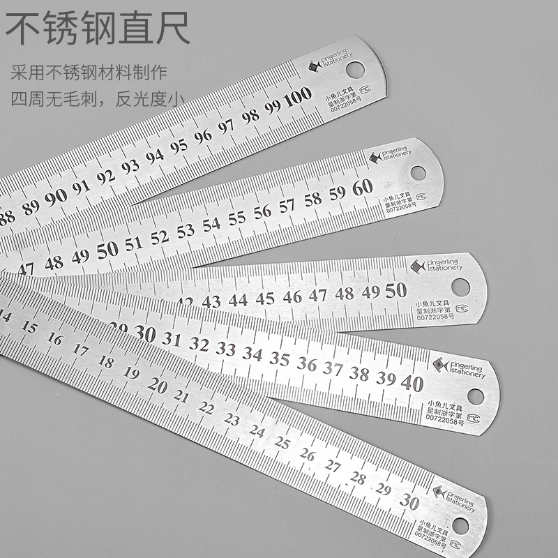 小魚ステンレス直尺15/20/30cm鋼尺厚さ測定工具鋼長尺木工用製図尺