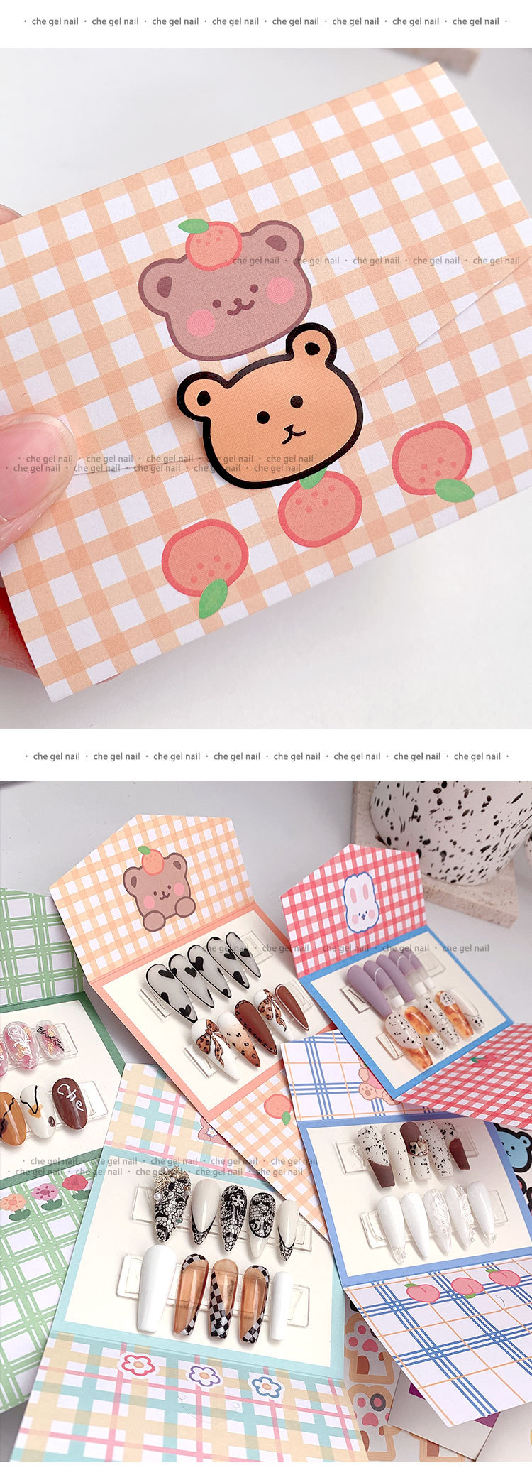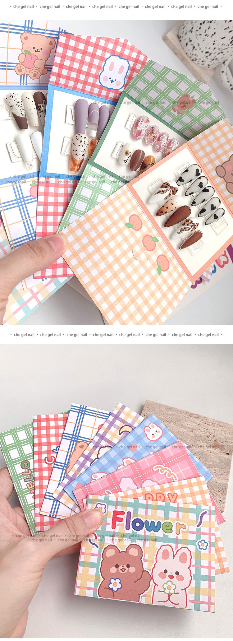 日本式の爪の格子縞の漫画の背景の3割引のかわいい封筒は爪の完成品の紙カードの熊を運ぶことができます。