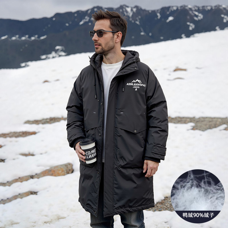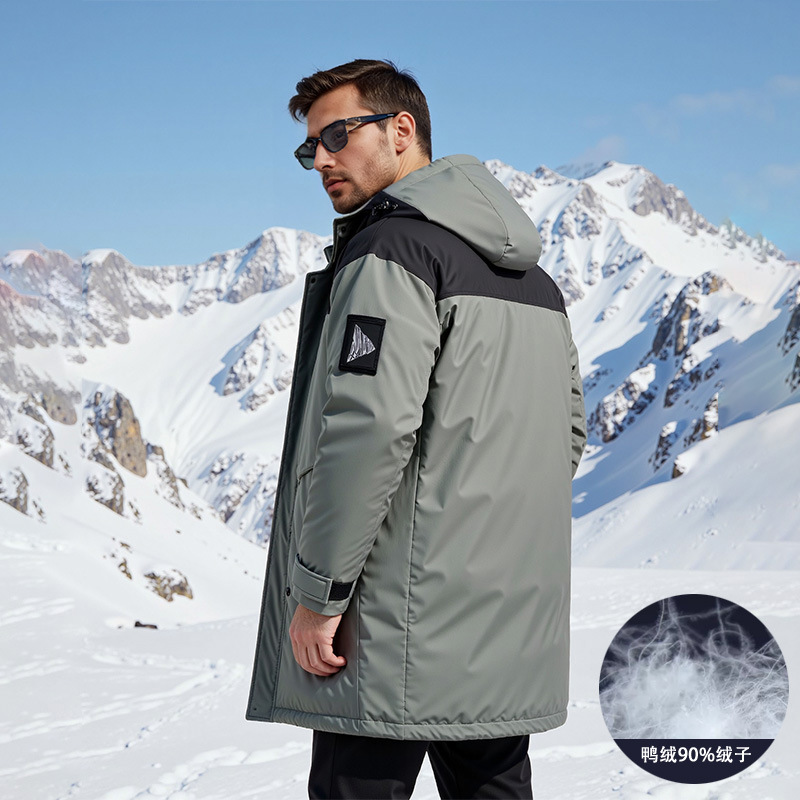 新国标90白鸭绒冬季羽绒服男中长款2025新款大口袋户外保暖滑雪服