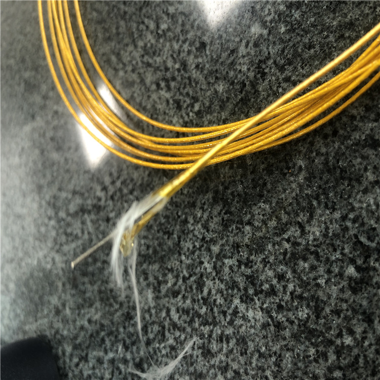 产品优点: 该产品通常为较大截面(图例为2UEW 0.10*1500),应用在大电流的环境中,和丝包线相比产品更为柔顺,和漆包绞线相比本产品外层保护更强,满足小尺寸骨架、大截面绕组线工艺及作业需求。丝包线是指在导线或漆包绞合线外面绕包天然丝或纤维丝(尼龙、聚酯纤维、天然丝、自粘丝等)做绝缘层而制成的线材。丝包线对于工作高频或高温的线圈,可提供隔离杂散电容,增加绝缘强度,降低表面温度身升高,广泛用于天线电感、视讯设备、高频电感及变压器等。