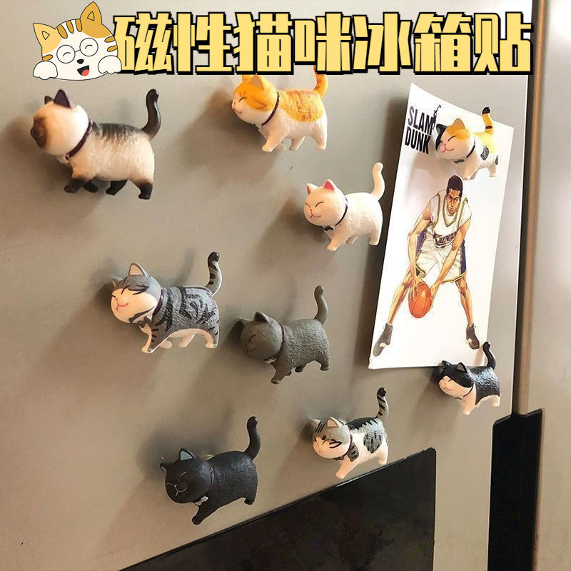 クリエイティブかわいい猫冷蔵庫マグネット磁気ウォールステッカー家の装飾インターネット有名人 3D 立体マグネット回転可能