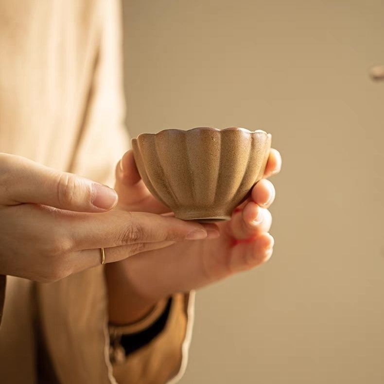 柴烧粗陶茶杯斗笠品茗杯日式茶杯围炉大小号茶杯喝茶主人杯花瓣杯