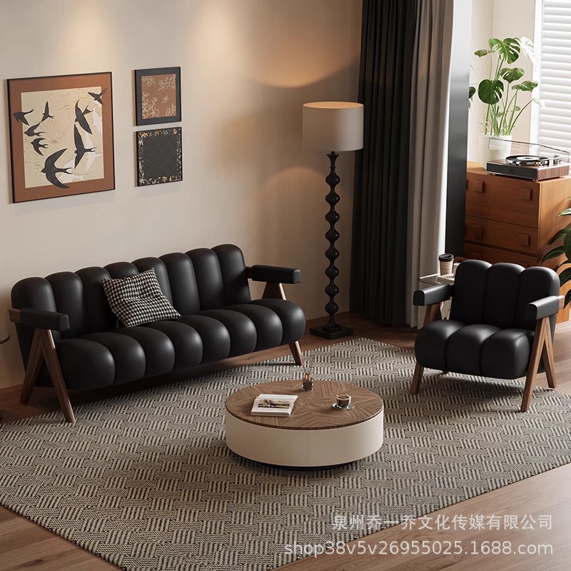 レトロなインラインソファブラックホームリビングルーム小さなアパート衣料品店ビューティーサロン休憩エリアアンティークスタイルソファチェア