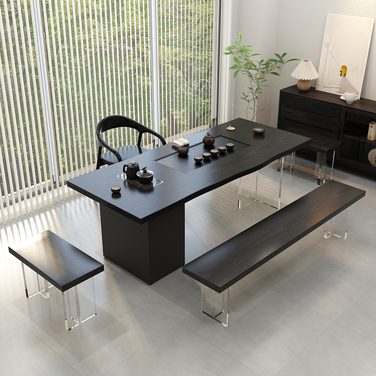 新中国式実木大板茶卓オフィス茶楼泡茶卓禅意工夫茶台家庭用茶テーブルと椅子の組み合わせ