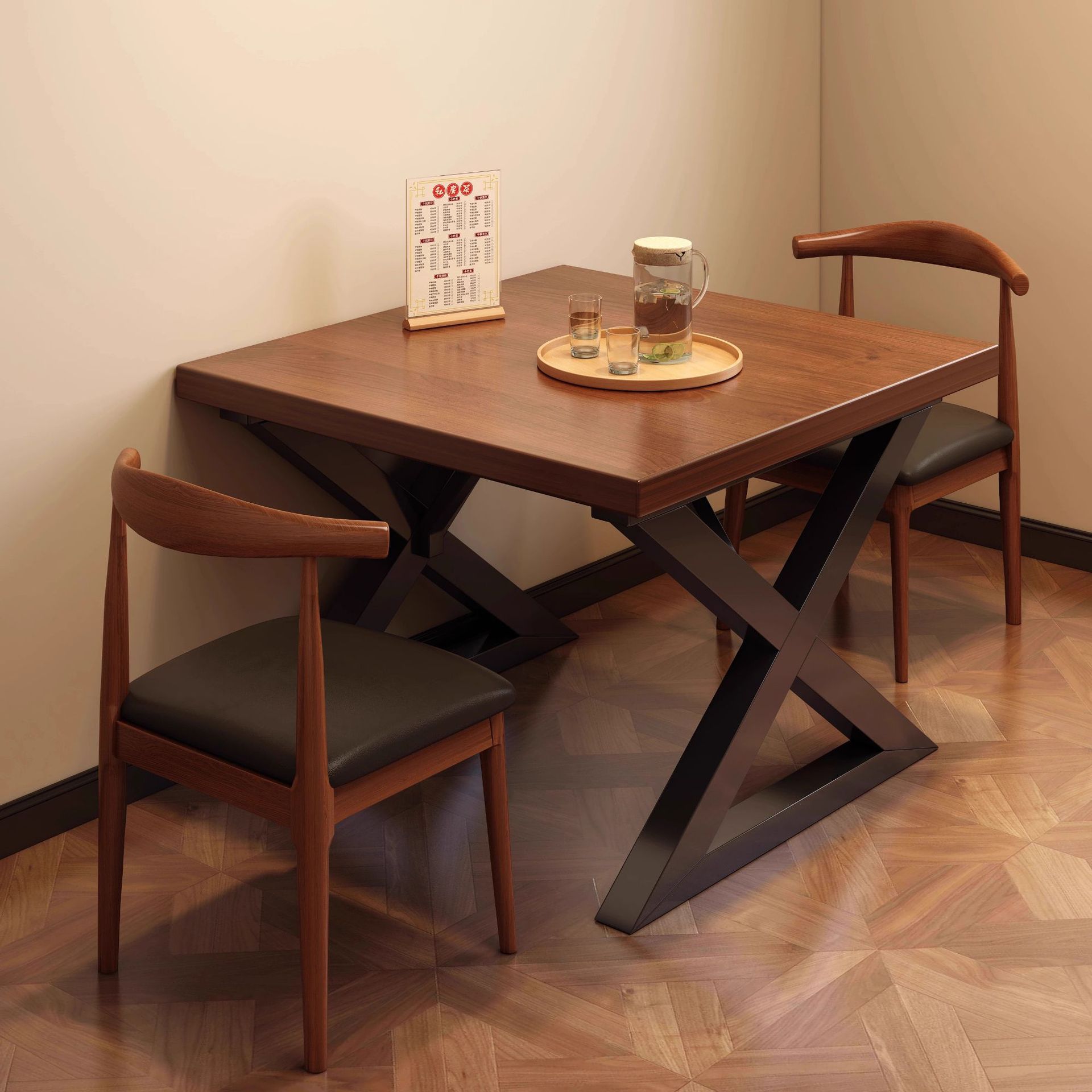 餐厅桌椅组合商用长方形吃饭桌子烧烤店小吃店快餐店面馆餐饮桌子