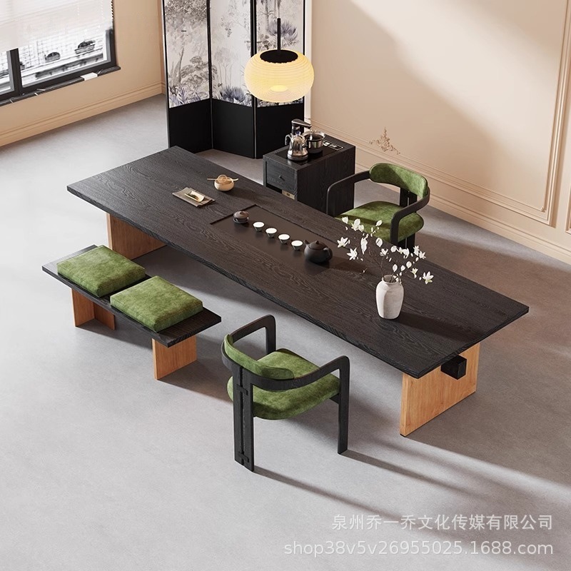 新中国式実木茶卓セット客間大板茶台家庭用オフィステーブルと椅子原木禅意泡茶卓