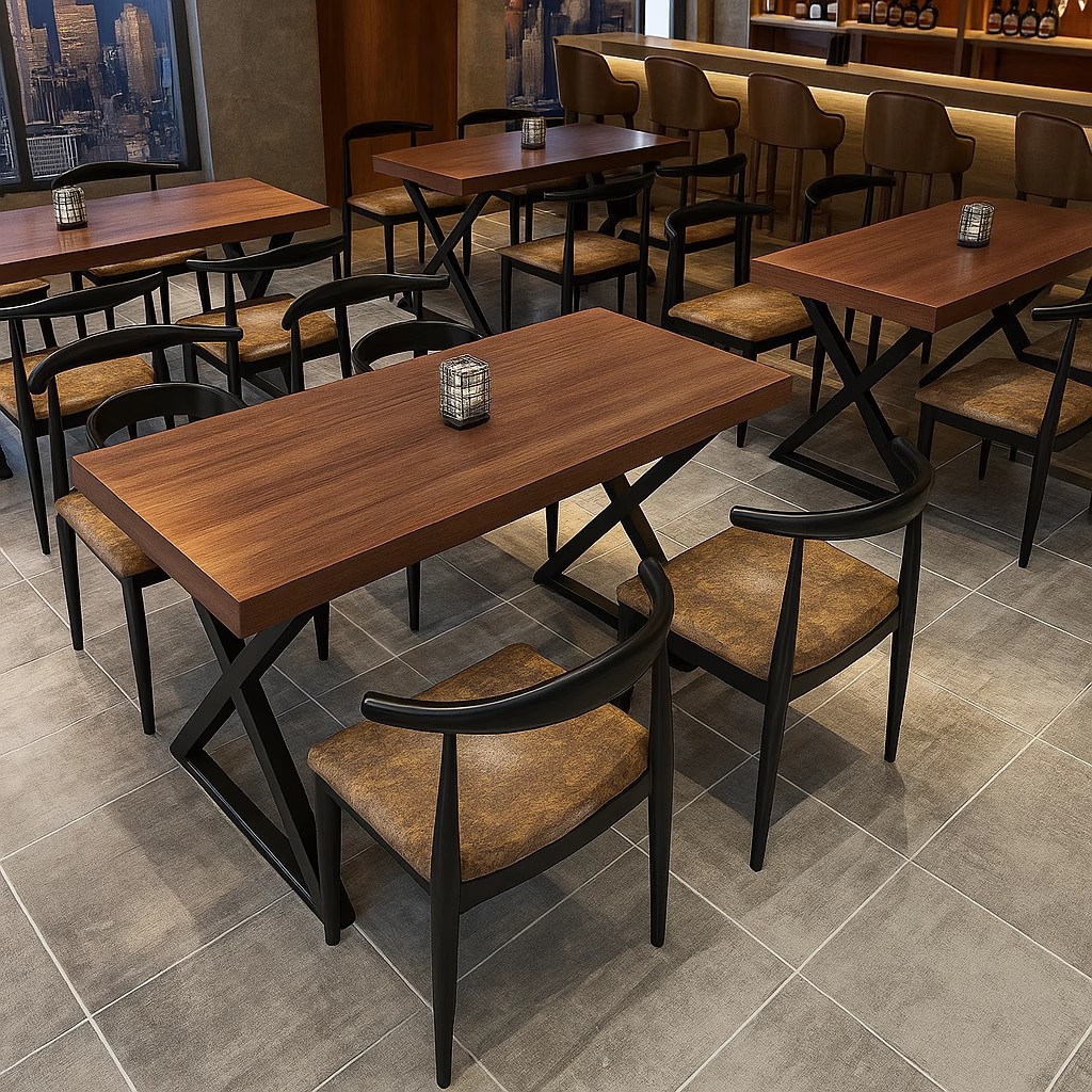 桌子餐饮商用酒吧快餐店桌椅工业风长方形简约餐桌烧烤店桌椅