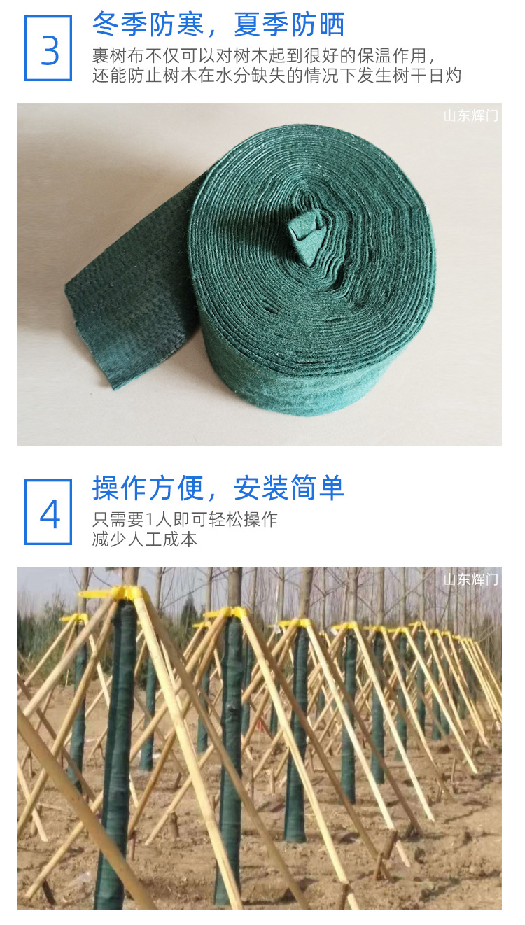 大树保温棉苗木防寒无纺布绿色缠树布条防冻裹树布
