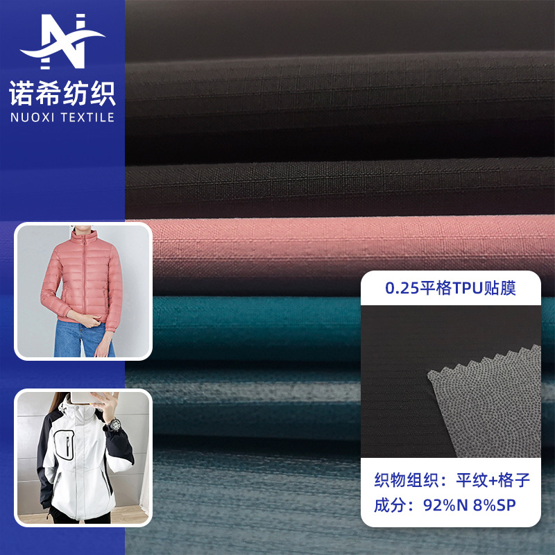 0.25平格TPUフィルムナイロン布防水通気ダウンジャケット風衣フィットネス服ジャケット生地