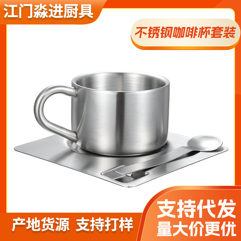 304ステンレスコーヒーカップヨーロッパ式二重コーヒーカップセットレストランカフェ用品クロスボーダースポット