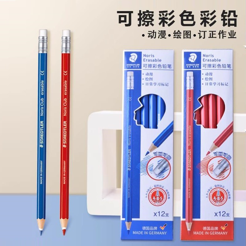 施德楼可擦彩色铅笔STAEDTLER 144 动漫彩铅 绘画 可擦除红蓝铅笔