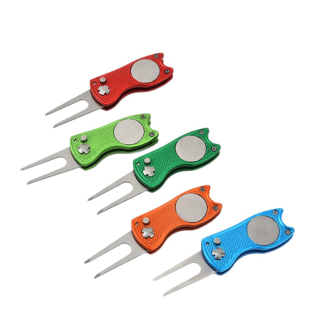 スポットグリーンフォークゴルフフォーク折りたたみ金属アルミハンドルスプリングボールフォークツールギフト芝生トリミングアクセサリー