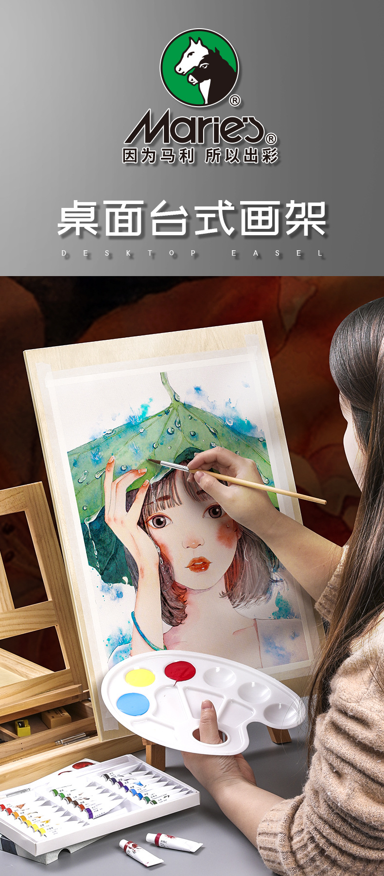 馬利ブランドのミニチュアケヤキのデスクトップの小さい画架は折りたたみ可能で、携帯絵画の写生スタンドの木製の油絵の棚です。