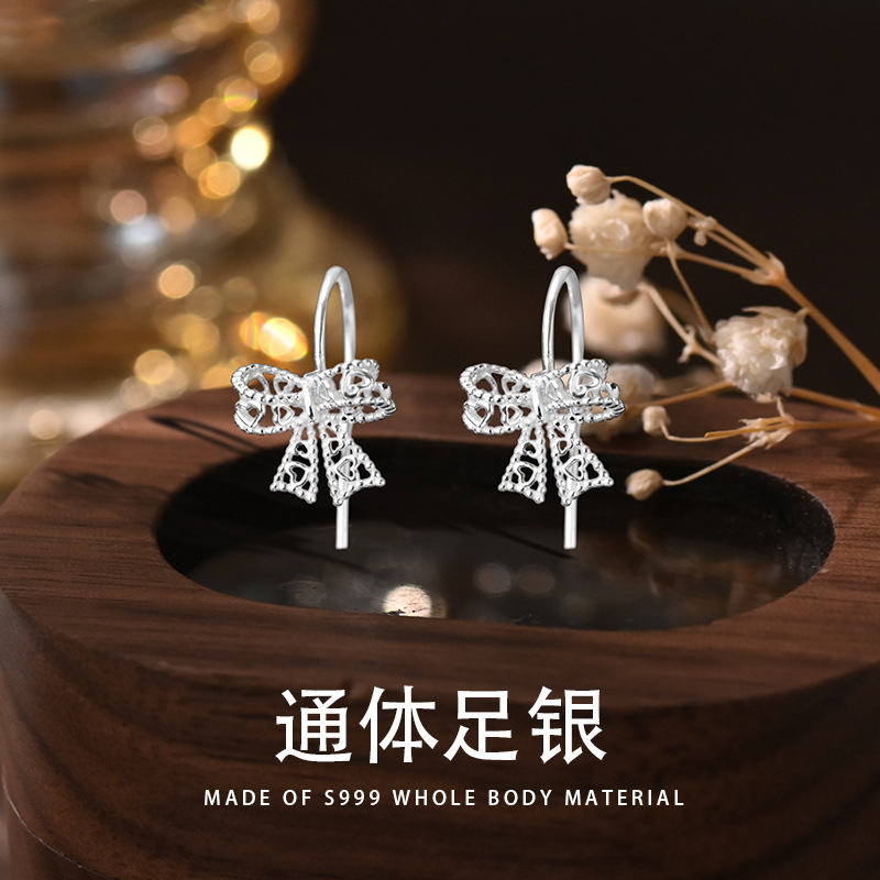 S999純銀の透かし彫りの蝶結びの耳掛けの精巧で小さい耳掛けの女性のイヤリングの耳飾りの足の銀は耳の穴の新型を養います。