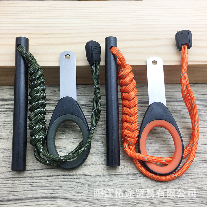 使用方法:用刮片或金属刀片慢慢地刮火石,产生一些碎屑于一小堆干草、叶子或是纸中 ,迅速划镁条产生火星引燃镁屑。当火焰产生后,加入细薄的木棒,即可形成火焰。