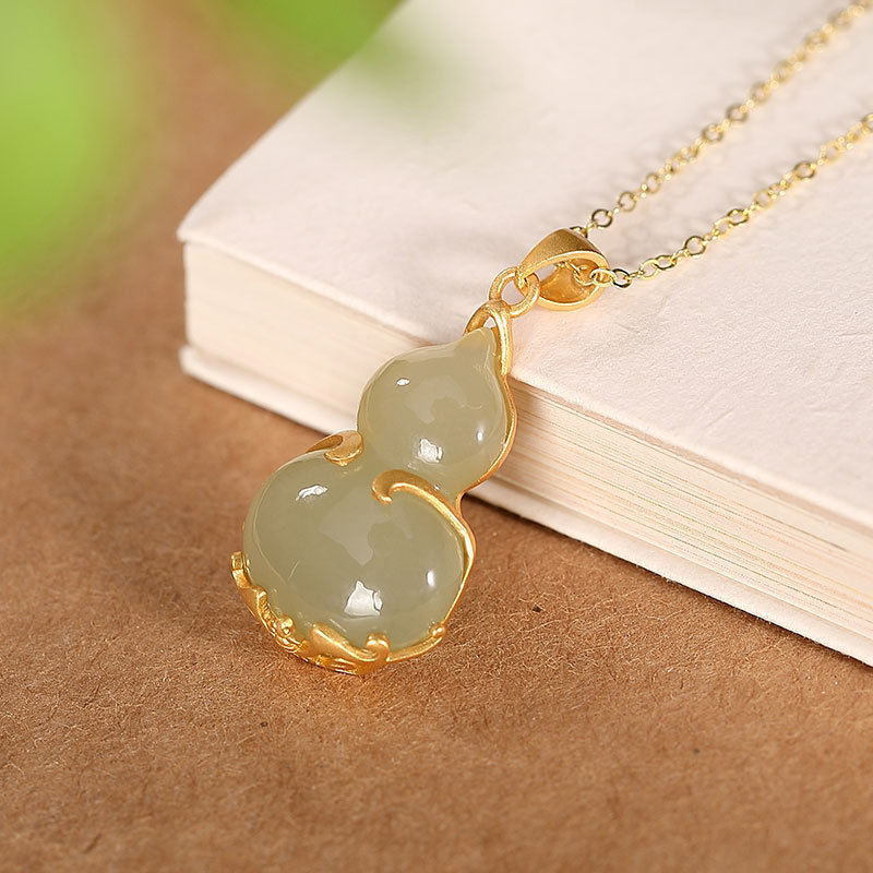 S925純銀和田青玉ペンダント金メッキレトロ個性葫芦型女性用セーターペンダント