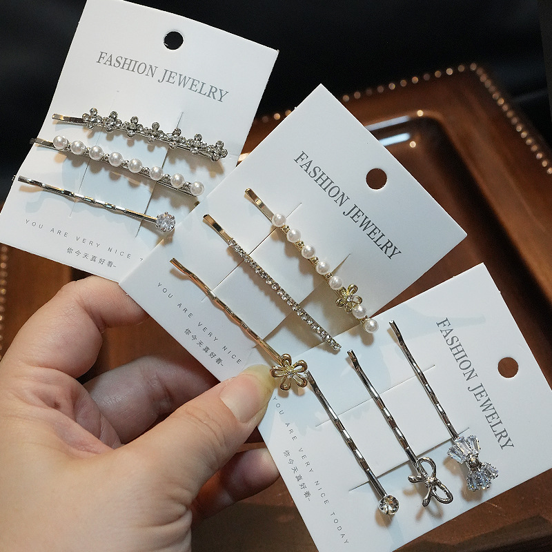 2025 新しいジルコンヘアピンセットインターネットセレブガールサイドクリップヘアピン前髪クリップシンプルなパールヘッドドレス