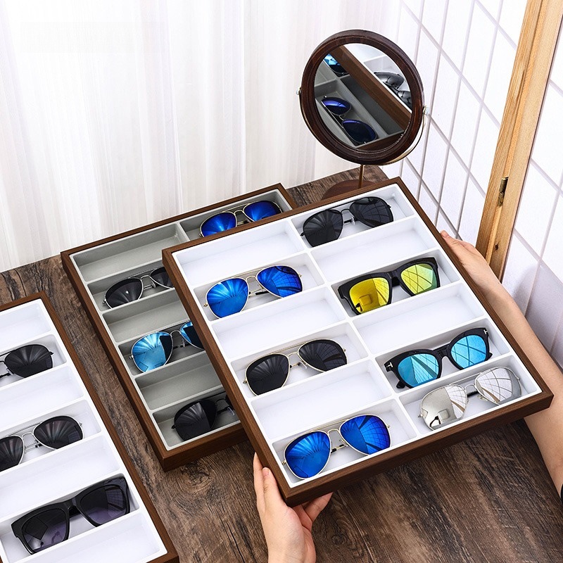 黒胡桃色18格子眼鏡展示棚眼鏡カウンター棚サングラスサングラス直播出店陳列皿
