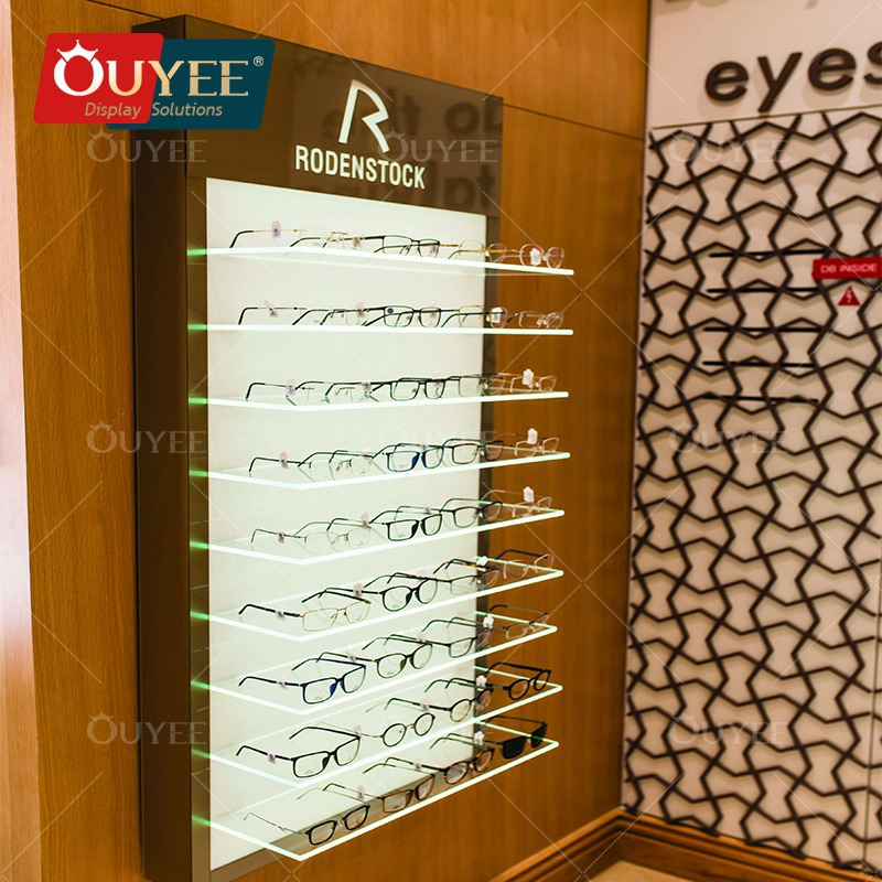 眼鏡店メーカー展示棚鉄木製眼鏡展示棚ランプ付きサングラス壁棚クリエイティブ眼鏡展示棚