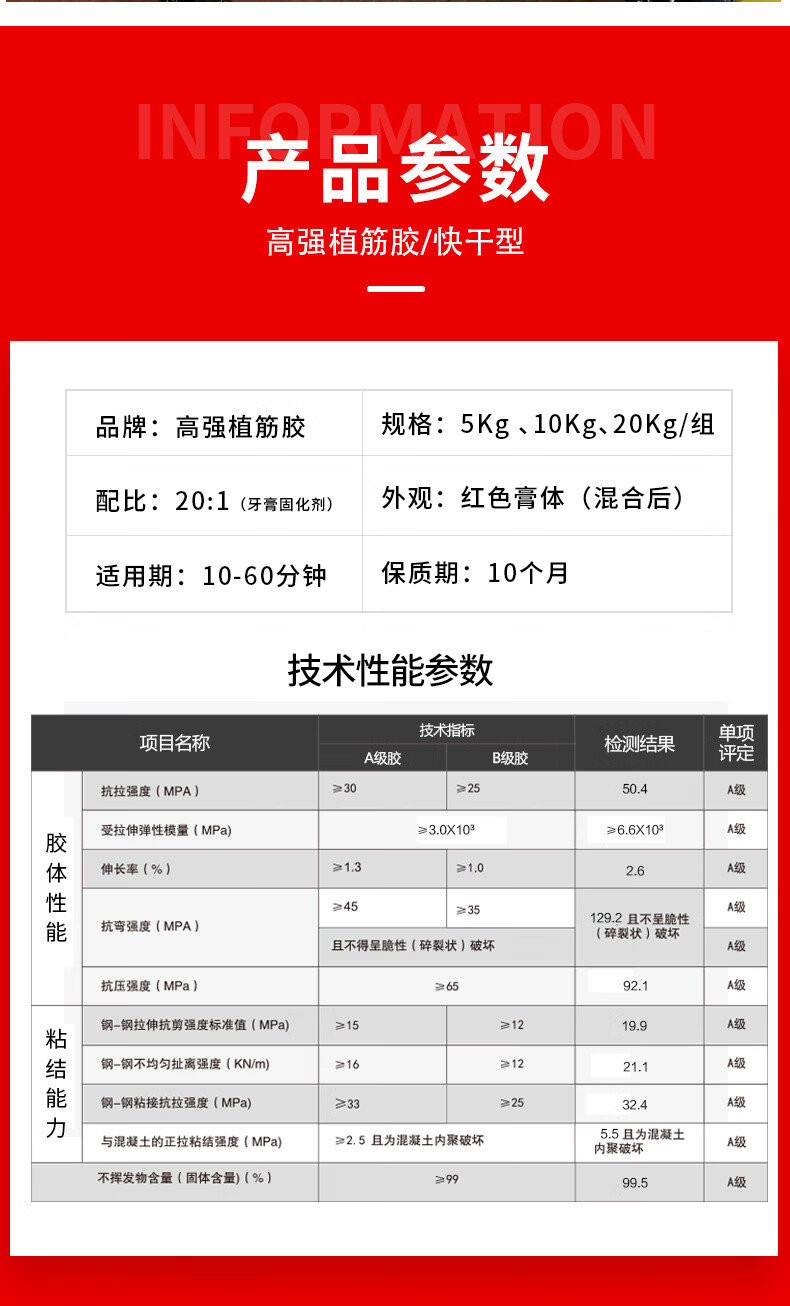 A级环氧注射式植筋胶建筑结构钢筋混凝土支装高强锚固铁路专用