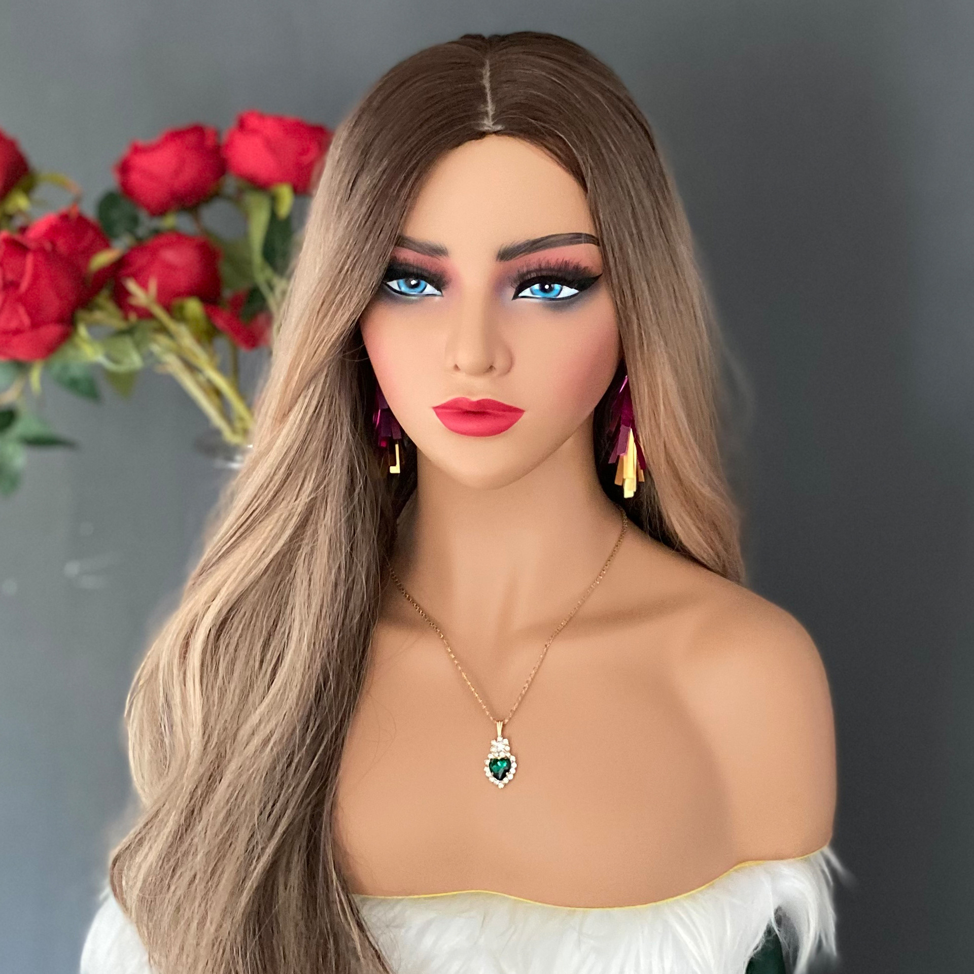 | 欧美黄肤色女头模假发头模双肩假人头耳环项链展示支架半身模型头 | |