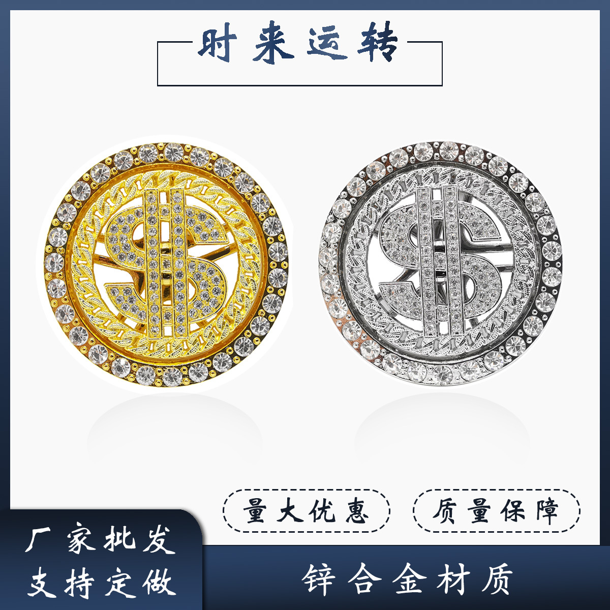 跨境欧美新款创意可旋转发财饰品钥匙扣镶钻时来运转吊坠挂件批发