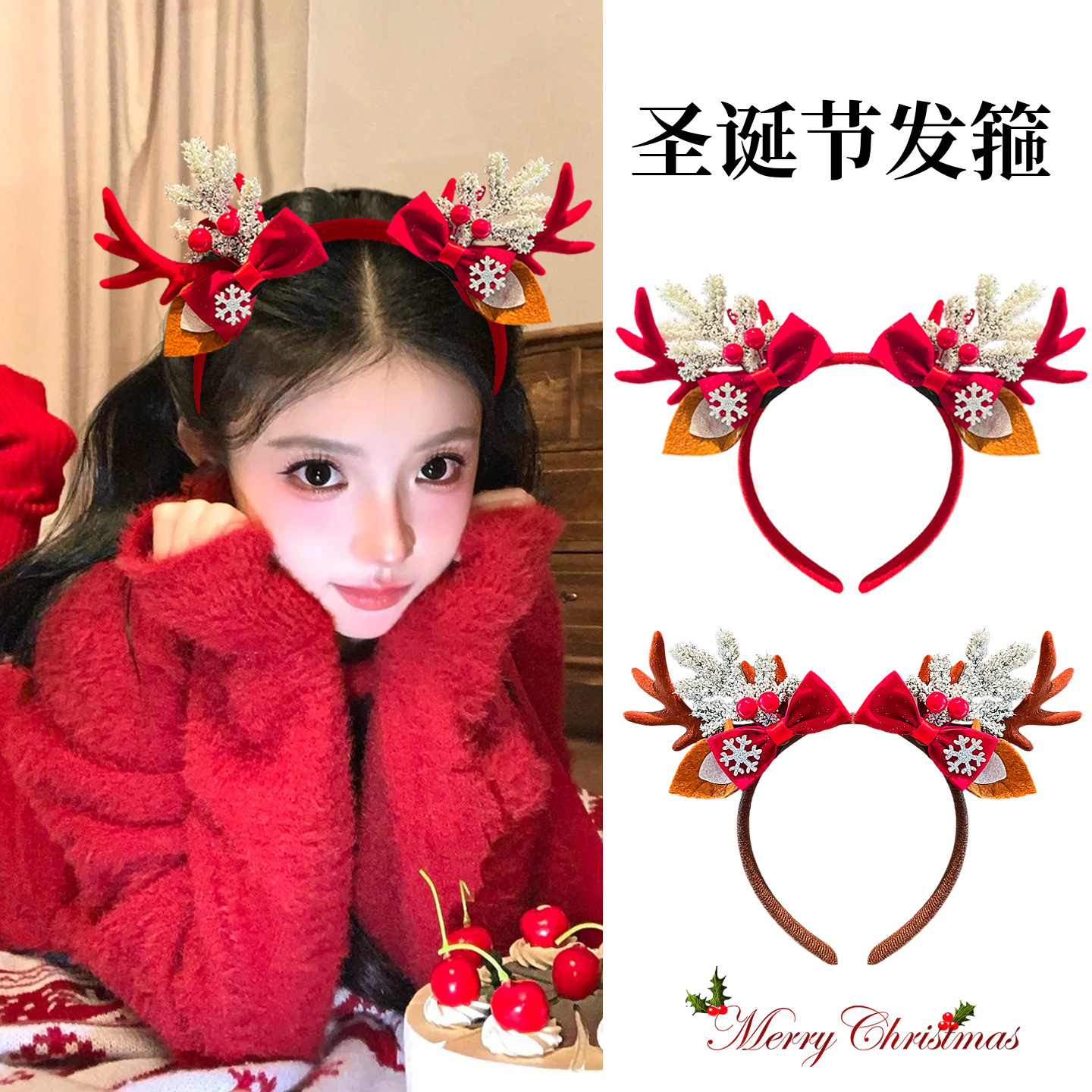 圣诞头饰鹿角发箍女森系雪鹿头箍拍照道具成人发饰节日氛围装扮