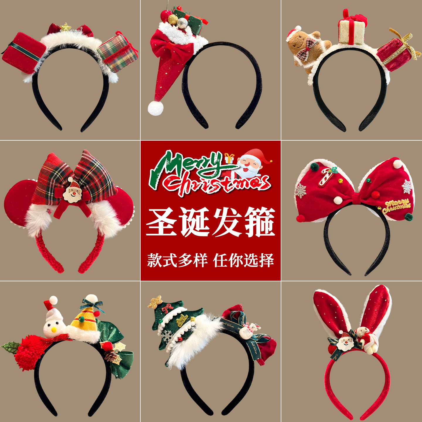 圣诞节发箍可爱圣诞老人装饰毛绒头饰拍照装扮发饰新款小熊蝴蝶结