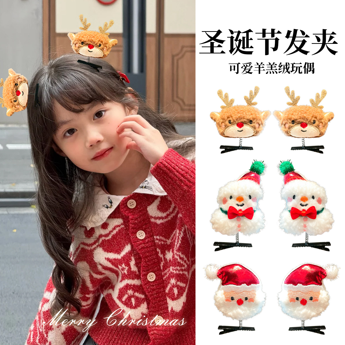 可爱羊羔绒发夹小鹿夹子儿童女宝宝发卡头饰装扮圣诞节发饰小夹子