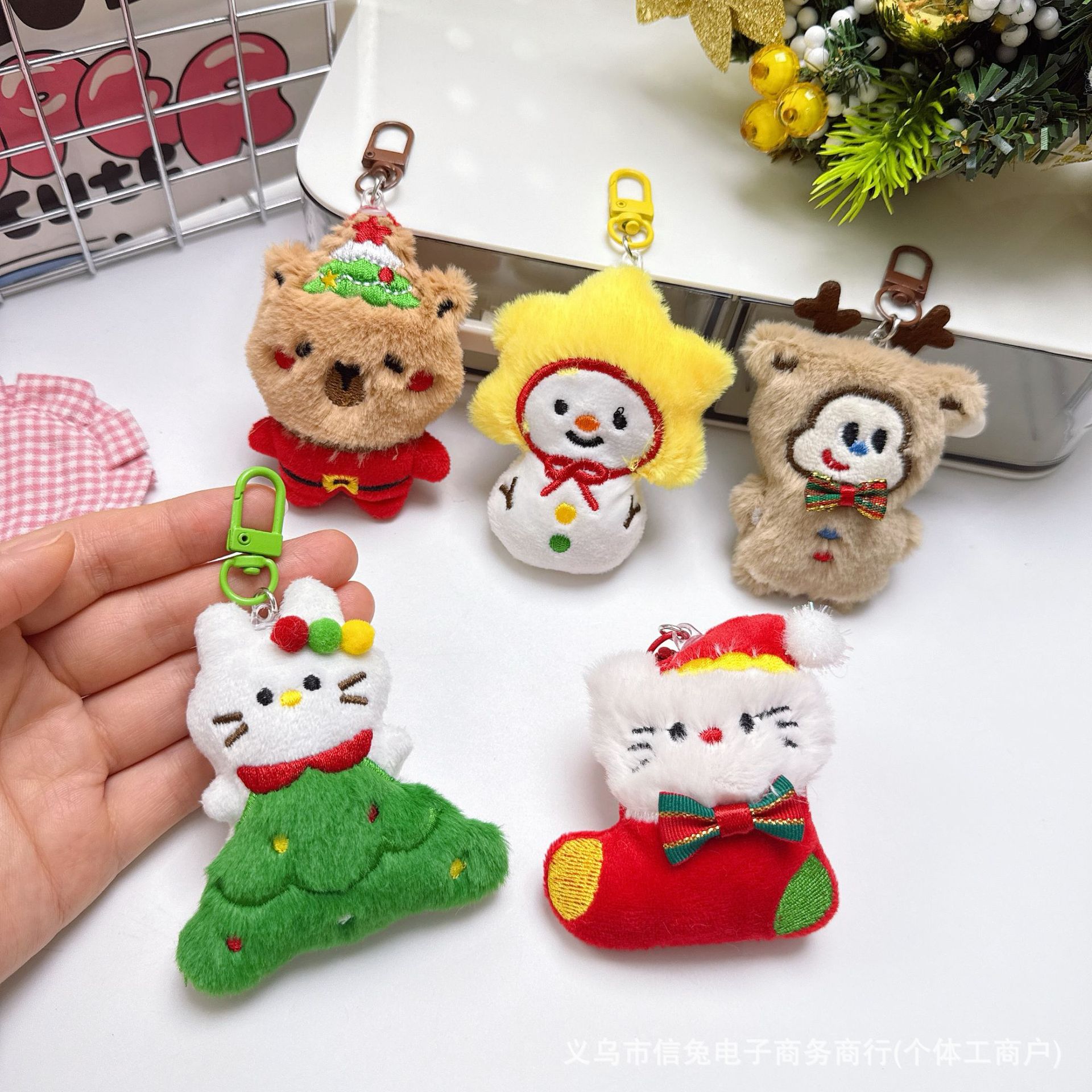 圣诞挂件毛绒公仔麋鹿圣诞树水豚胸针包包钥匙扣节庆装饰小挂饰