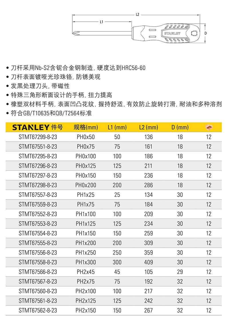スタンリー十字ドライバーセット工業級改錐ドライバー家庭用修理工具ドライバー