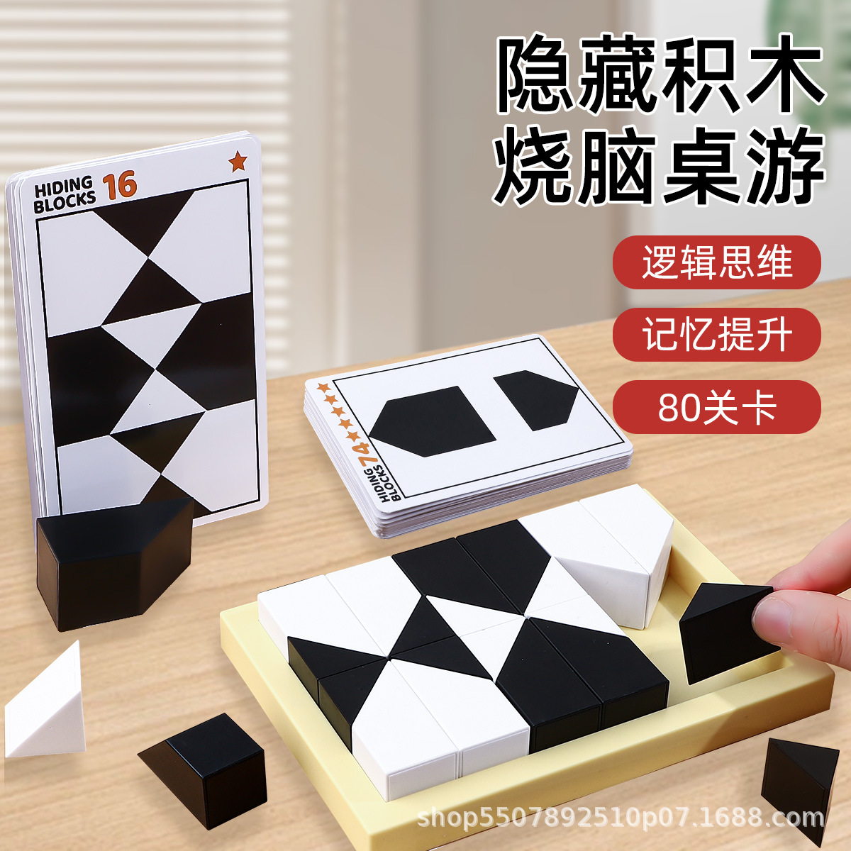 プラスチック隠し積み木パズル白黒積み木パズル創意組み合わせ玩具立体空間思考訓練