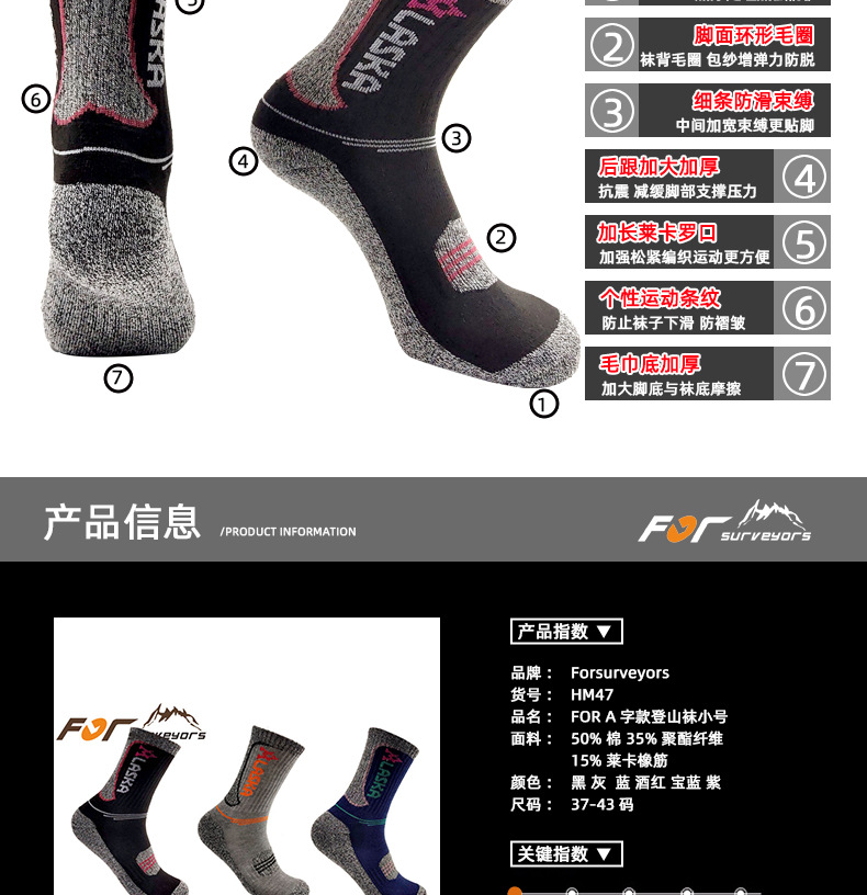 Forブランド登山スポーツ靴下タオル底厚手高筒長中筒靴下a字男性ランニング速乾プロ
