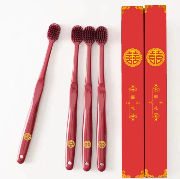 結婚祝い大赤色成人家庭用竹炭軟毛歯ブラシ新型大赤色結婚祝い用品歯ブラシカードケース卸売り
