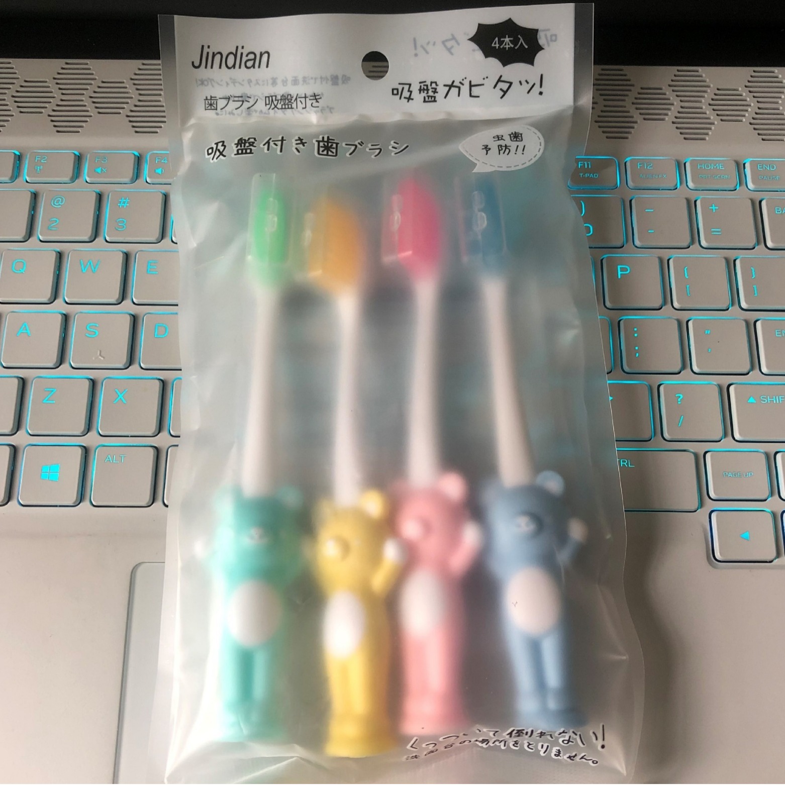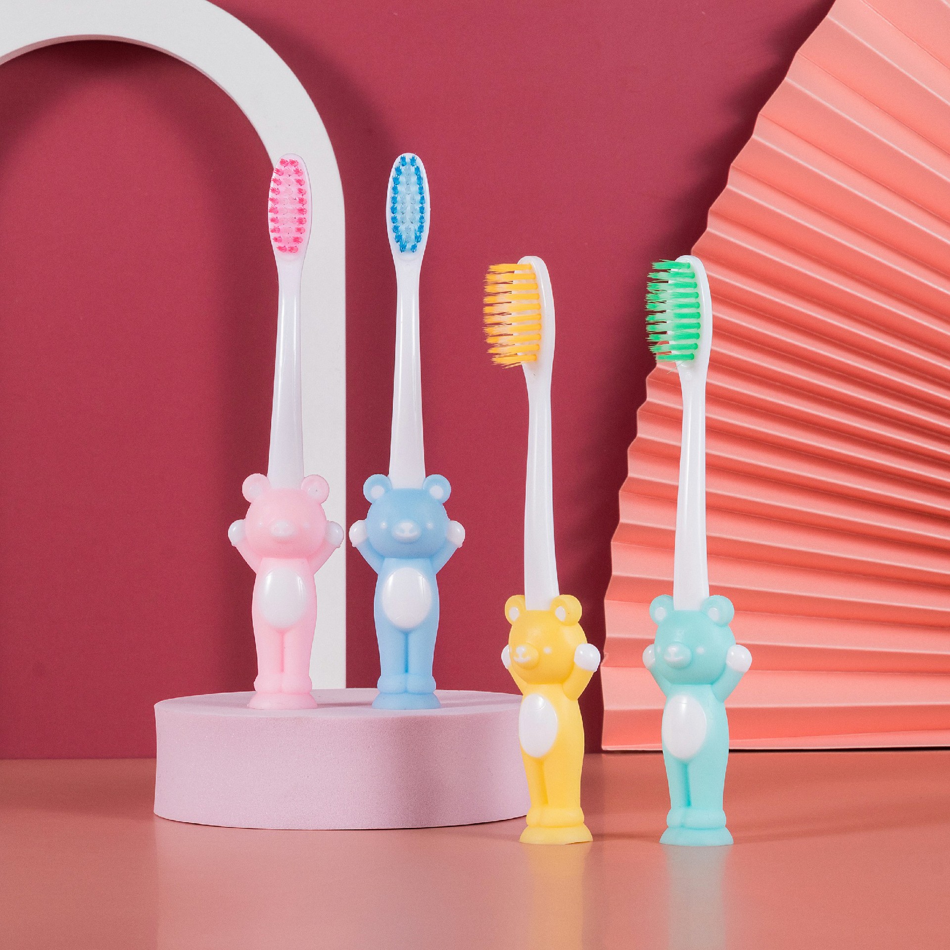 3-12歳の子供の漫画の熊の赤ちゃんの柔らかい毛の歯ブラシの4本は清潔な歯の家庭用スーパーの卸売りの現物を詰めます。