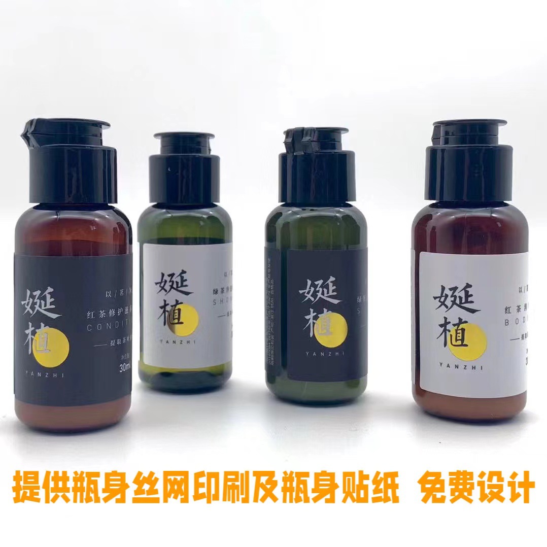 30ml透明黄色ペットボトルカバーホテル民宿シャンプー入浴露瓶化粧品乳液分注瓶