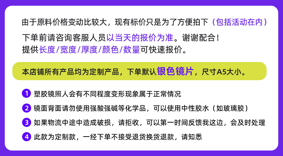 Ps鏡パネルコーティング1-5mm銀色鏡パネルアクリル両面鏡一金一銀pcレンズメーカー