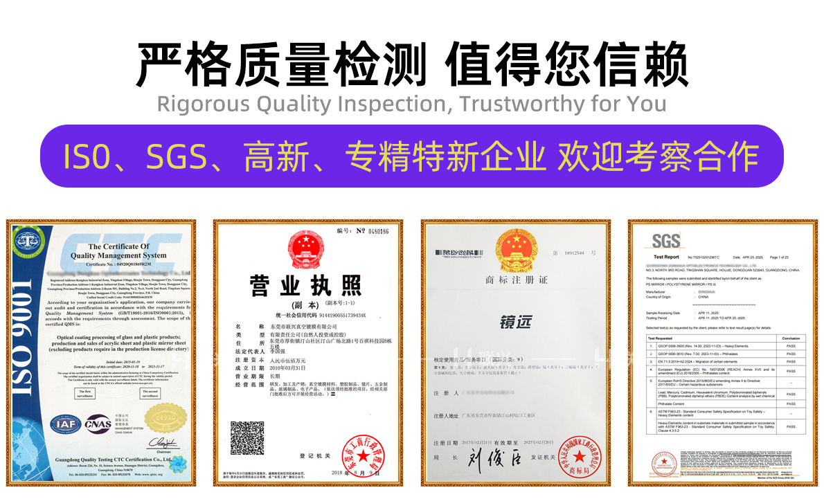 PMMA大枚アクリル鏡PS PETG玩具鏡アクリル銀鏡浅金宝藍鏡メーカー卸売り