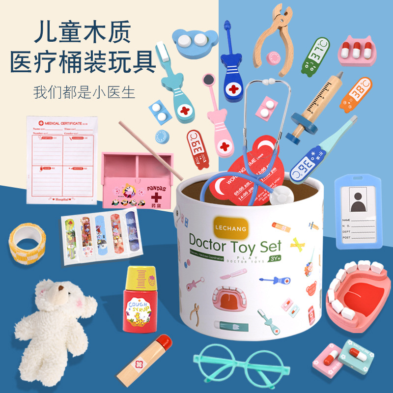 バケツ入れ子供シミュレーション医者おもちゃセット男の子医者女の子看護師注射聴診器木製プレゼント
