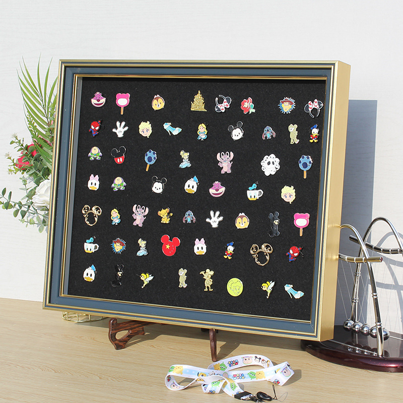 迪士niバッジ枠泡マット記念バッジ枠中空展示枠実木メダル収納枠にpinを置く