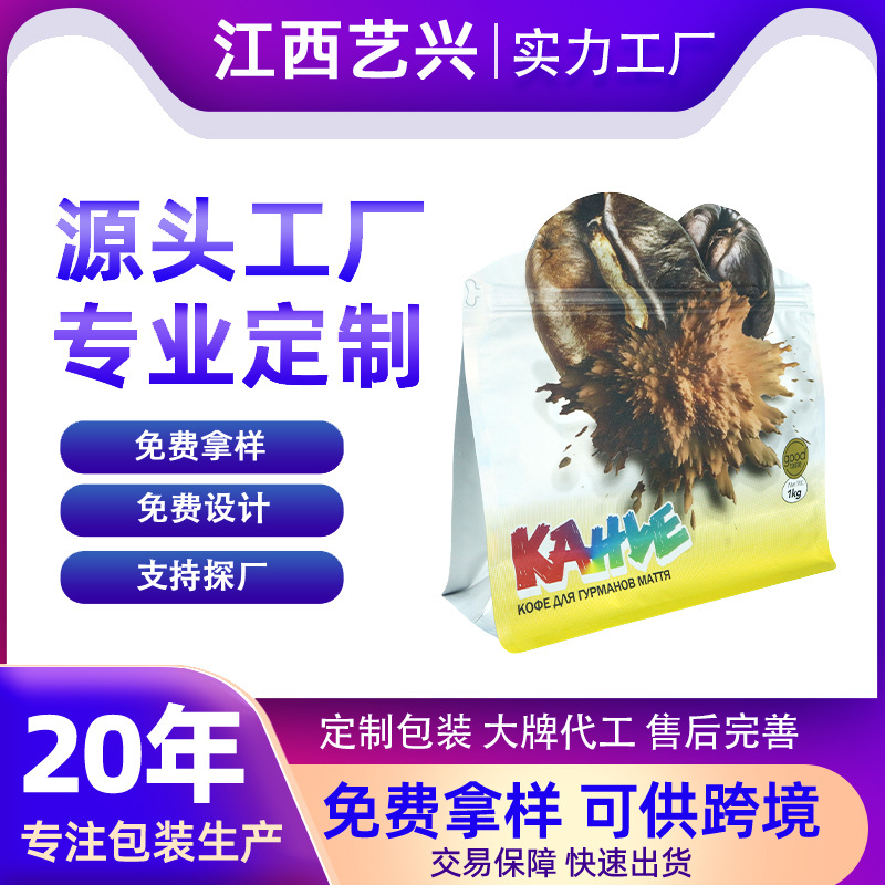 カスタマイズされた印刷されたコーヒー豆包装袋食品グレード 100g250g500g レーザージッパーシール自立 8 サイドシール