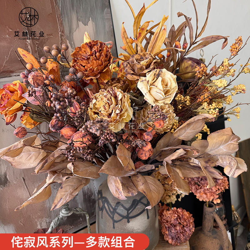 わびさびスタイルシリーズ - さまざまな組み合わせのホームリビングルームのソフトデコレーションウェディング卸売模擬花プロジェクト実果