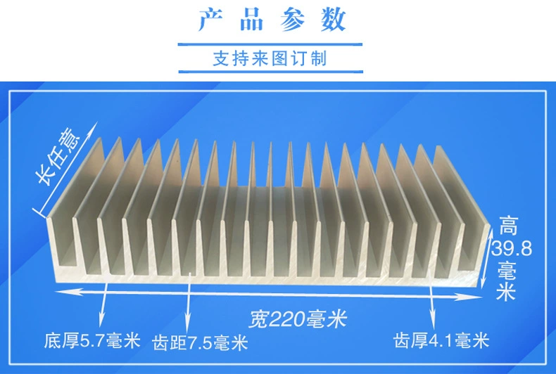 アルミ形材ヒートシンク整流器冷却板基板放熱器幅220mm * 高さ40アルミニウム合金放熱