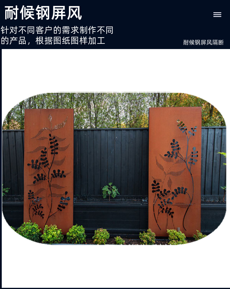 耐候性鋼板カーテンウォール風景彫刻赤錆鋼板加工カスタムメイドの古い錆鋼板レーザー切断中空彫刻